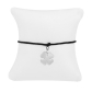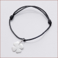 Subtelna bransoletka z elementem wykonanym ze srebra próby 925. Długość bransoletki jest regulowana poprzez przesuwane supełki.