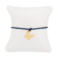 Subtelna bransoletka z elementem wykonanym ze złota próby 585. Długość bransoletki jest regulowana poprzez przesuwane supełki