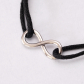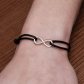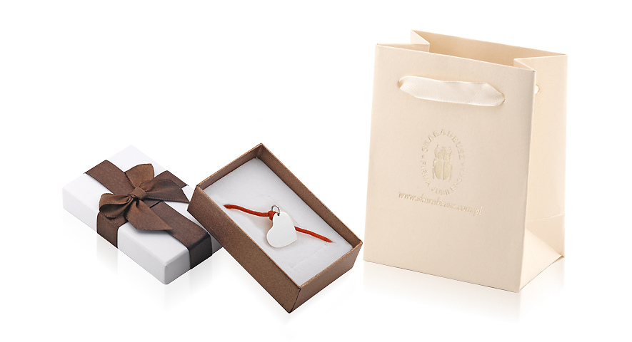 Subtelna bransoletka z elementem wykonanym z białego złota próby 585. Długość bransoletki jest regulowana poprzez przesuwane supełki