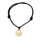 Subtelna bransoletka z elementem wykonanym ze złota próby 585. Długość bransoletki jest regulowana poprzez przesuwane supełki