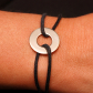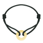 Subtelna bransoletka z elementem wykonanym ze złota próby 585. Długość bransoletki jest regulowana poprzez przesuwane supełki