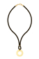 Naszyjnik na kauczuku lub rzemieniuMateriał: żółte złotoPróba złota: 0,585Długość kauczuku , rzemienia dostępna wg zamówienia Średnica krążka : 23mm