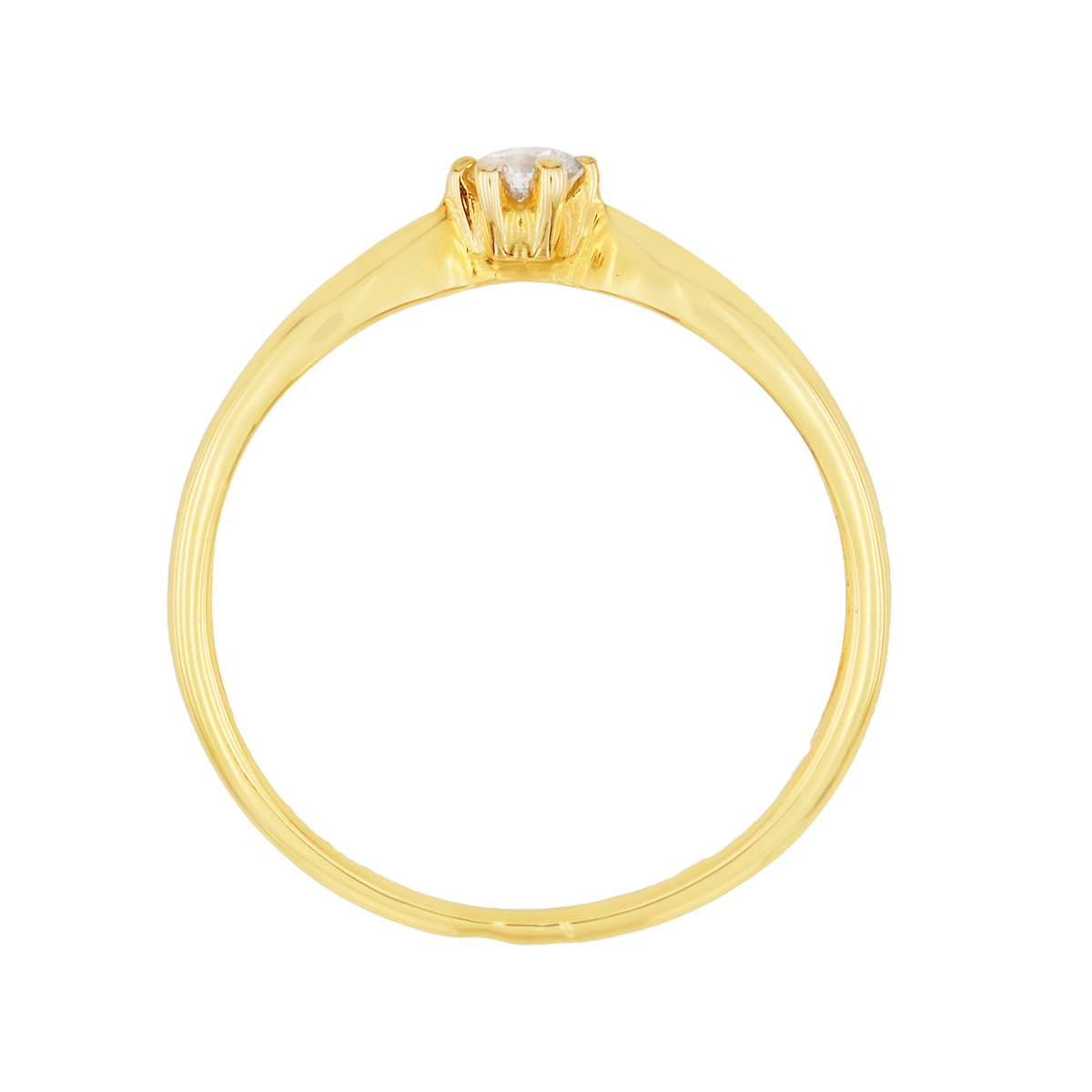 Materiał: żółte złoto Próba złota: 0,585 Rozmiar: 15 Kamień: diament Masa: 0,10ct Barwa: H Czystość: Si Szlif: brylantowy